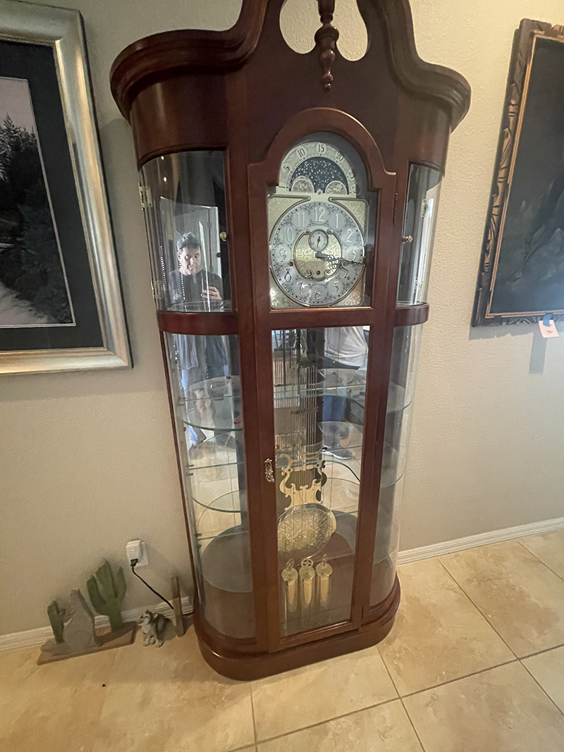 Featured is an extraordinary assortment of knives and watches, complemented by a stately Ridgeway grandfather clock—an elegant statement piece for any home.